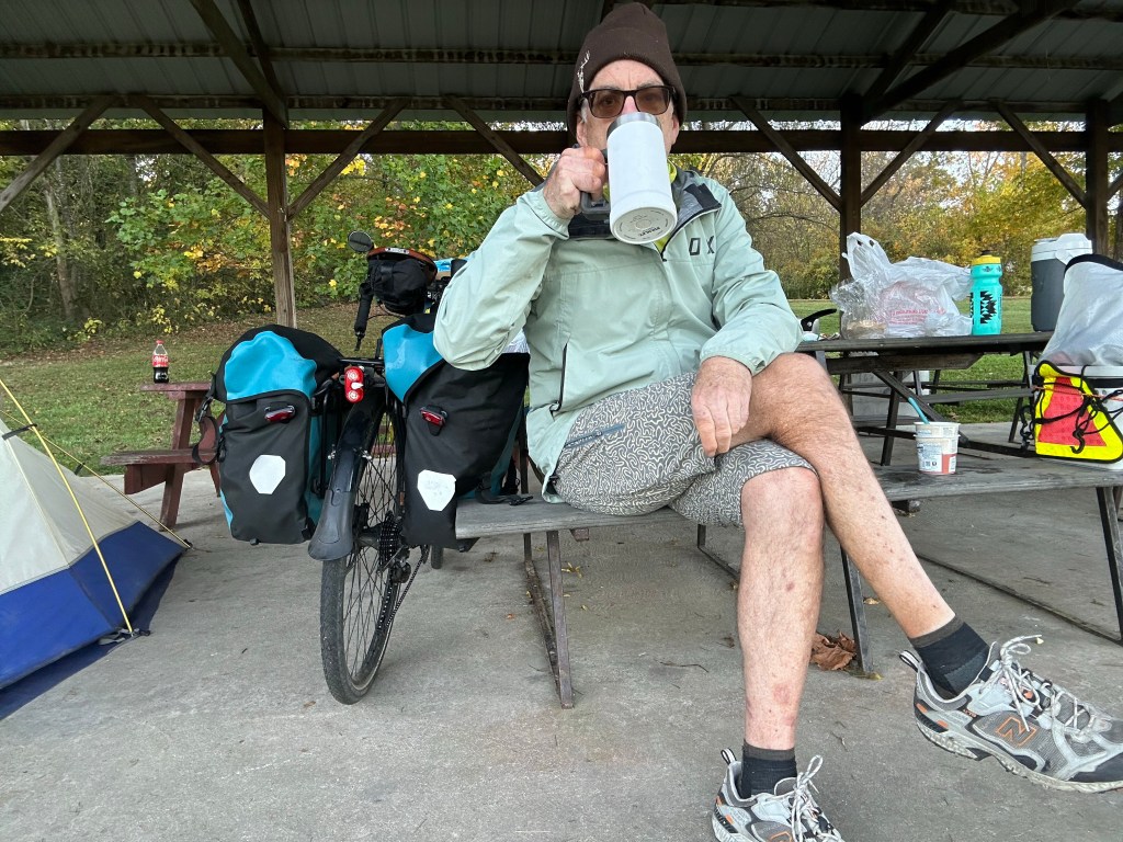 My tube was toast, but luckily I had a spare. About an hour later I was back on the road. When I got to Murfreesboro I pulled in to a bike shop, Moab Bikes, to check my air pressure and buy a new spare tube. The guy at the shop was really nice and asked me about my route – and then gave me some suggestions that he felt would make it better. Touring tip: always go with the local intel! I changed my destination to Manchester on the route he recommended. I also got a recommendation on a place for lunch, and The Alley was fantastic (gumbo, Nashville hot chicken sliders, blackberry cobbler and a big mug of hot coffee). I was fueled for the ride! The countryside was beautiful, even if it was a little wet.