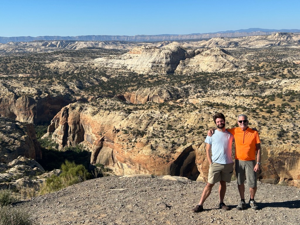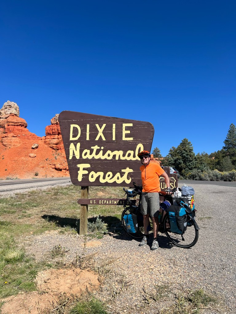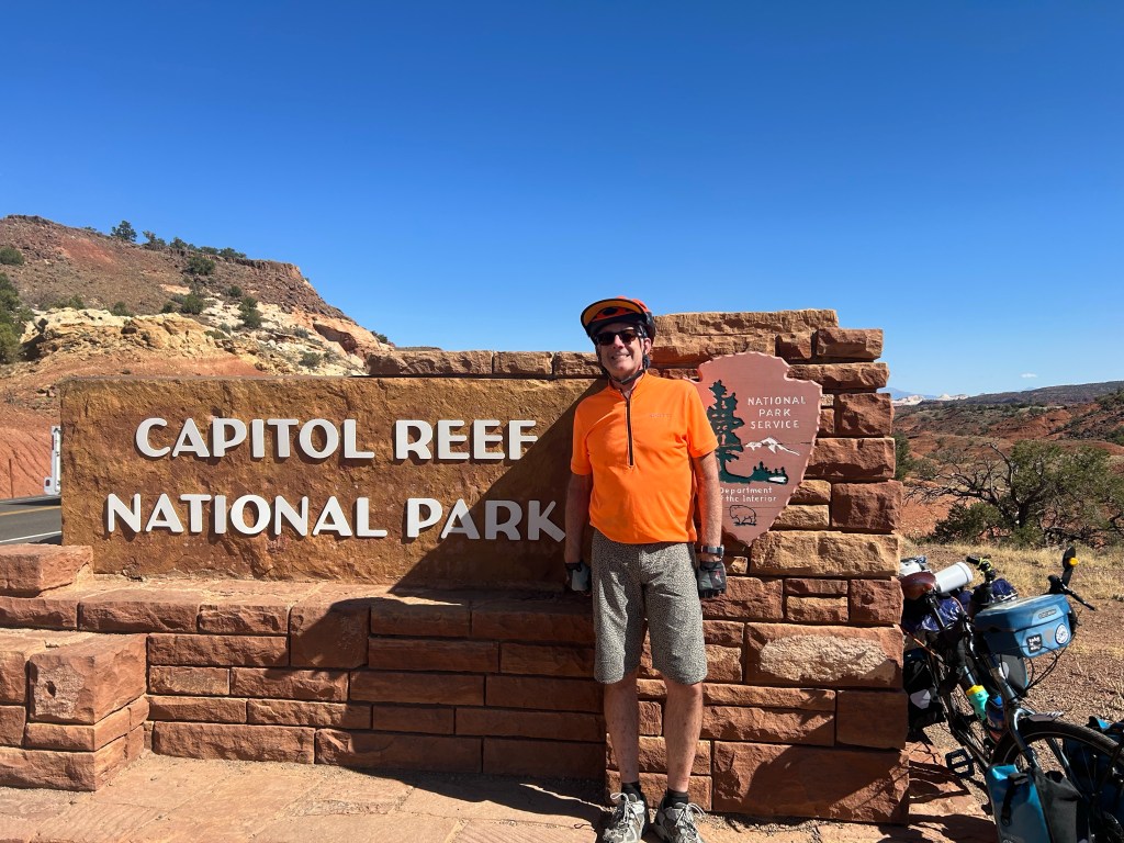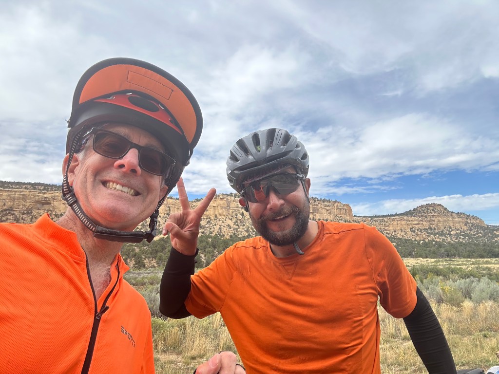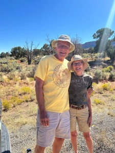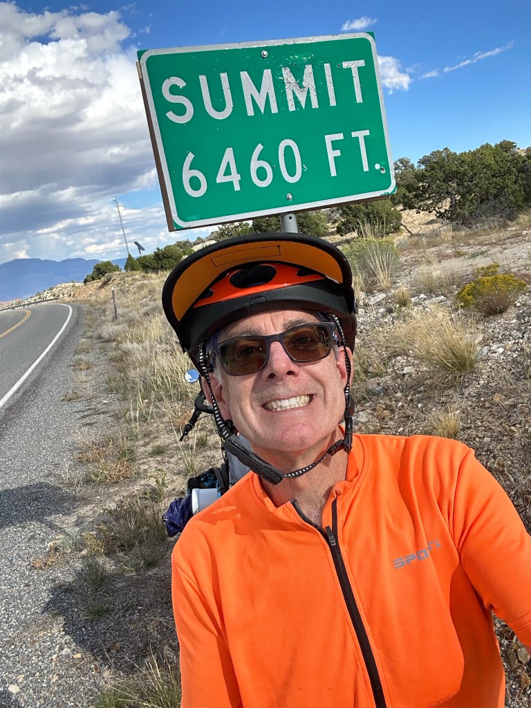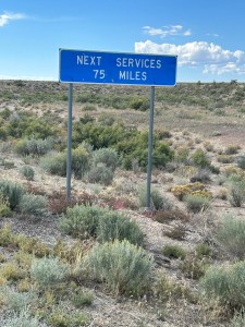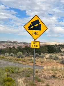 I burned through all my cold water and was now faced with drinking water that was warm as ……..let’s just say it was warm. Where was the guy offering me drinks now? Warm water does not do it for me, so I was on the lookout for sources of cold water. When I saw an SUV parked on the side of the road I pulled up and met Don and Shelly – from NM no less! They had pulled over to do a little rock hounding in the canyon off the road. I asked if they had any cold water they could spare and Don quickly produced a bottle of glistening, ice cold water. I drank it in about 10 seconds and he generously handed me another, which I put in my thermos. You meet the nicest people on the road!!