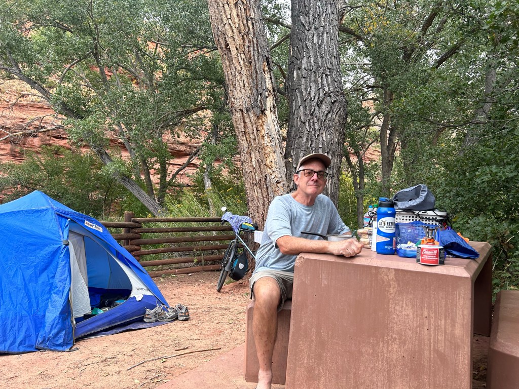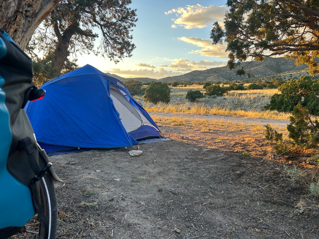 I rode another 10 miles or so down past Natural Bridges National Monument and started looking for a potential campsite. Just then a doe and two little fawns ran right across the road in front of me! Even though I was alone, I had to say “Awwwww”. Shortly afterwards I turned on a dirt road snaking off to the left, and a few hundred yards up found a nice campsite.