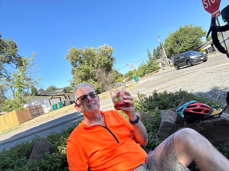 So after reading my last post, I am sure you are saying to yourself…..hey self, this bicycle touring stuff seems fun and not that tough. That is what I was saying to myself too. Well, today was a different day…. Read on. I was up and out the door around 7:30am to ride into Sacramento for breakfast and then onward to Folsom and beyond. Crushing it! My GPS is still not working, but no matter – I would figure it out. So I started the day by riding 8 miles in the wrong direction – CRAP. That meant I had to ride 8 miles back just to be even. So 16 miles later I was back in Davis and heading out of town the right way – then my rear tire went flat. What? I have on top of the line, brand-new tires. In fact, later that day when I stopped at a bike shop to buy some new tubes, the mechanic said he had never seen a flat with that tire – just my luck, a piece of stainless steel wire had somehow flipped up and punctured the sidewall. No problem, I took off the tire and patched the tube – and I was on my way. I rode about 200 yards and my rear tire went flat again! Only this time it was my fault – I had inadvertently pinched the tube between the tire and the rim and it exploded. So… I had to start all over again, this time putting in a new tube. All of this was happening in the blazing sun as I was riding by a rice farm and there wasn’t a tree or any structure to be found. OK, flat #2 fixed – I got on my bike and rode about 50 feet… and my rear tire went flat again!!! What is the universe trying to tell me?? I stopped and took the tire off again and could find nothing wrong with the tube – I guess the valve stem didn’t seat properly or something. Anyway, I put my bike together for the third time and so far, no more flats. So onward – The cryptic maps I am using directed me to a bike trail that was to take me into Sacramento…..but I couldn’t find it! I finally found myself on a dirt road that headed towards Sacramento, so in my frustration I decided to ride it. After 4 miles or so…..it became completely flooded out and I had to return to the starting point. I had almost given up on this mysterious bike trail when I rode over to the interstate and saw that a narrow bike path had been put in right next to oncoming traffic with a concrete barrier separating me from them. The interstate was busy and it was a tough ride into Sacramento. But I got there – earlier I figured I would arrive about 9am or so…..but it was 2pm! I re-set my expectations for the day and decided to ride to Folsom, where there was a state campground next to a lake – sounded nice. I got a burrito and an agua fresca at Sals Tacos (LR is better!) and then went to the aforementioned bike shop. The guy there knew the campground and had a favorite camping spot that he offered to call and reserve for me. Things were looking up! Until he gave me the news that the campground was completely sold out. But he was optimistic that they would let a touring biker have a little spot, and the ride to Folsom was nice – 20 miles of paved bike path along the river. So I went for it. Ok, if you ever go cycling in Sacramento – beware. There are two paved bike paths, one on either side of the river. One goes to Folsom….the other goes somewhere else but mostly just goes by huge homeless encampments where you ride on until your spidey-senses tell you that this is probably not where you should be. You confirm this with a ranger who miraculously came driving by and bike back to town, across the bridge, and onto the nice path that goes to Folsom. I know you are counting – so yes, I got lost three times today. The path to Folsom is really nice, and I enjoyed the ride. But as I got nearer to Folsom and it got later and the thought of negotiating for a campsite lost its initial charm……..well, let’’s just say I am bedded down comfortably at a Marriott. I took one pic today: