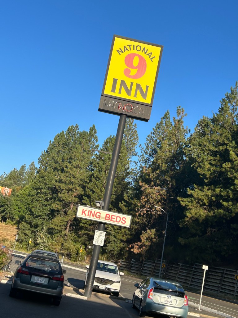 My goal was to reach Pollock Pines by late afternoon, where I was going to camp out….the fact that I came up 11 miles short cannot be blamed on the GPS. Between today and tomorrow I still have to climb those 9,000+ feet, and today I felt it! Uphill all damned day and steep climbs. I knew it was coming, but still complained, and by 5 I felt like I was riding through maple syrup and it was time to stop. I am in Placerville. CA which seems like a nice enough touristy town out here in the middle of nowhere. No campground though. I thought about camping in the city park, along with the partying high schoolers and random homeless people and vagrants…..but no. I am the National 9 Motel – the finest 2 star lodging in town. Just hoping I don’t get bit by bed bugs! My goal tomorrow is to reach South Lake Tahoe, where another Warmshowers host is expecting me. We will see!