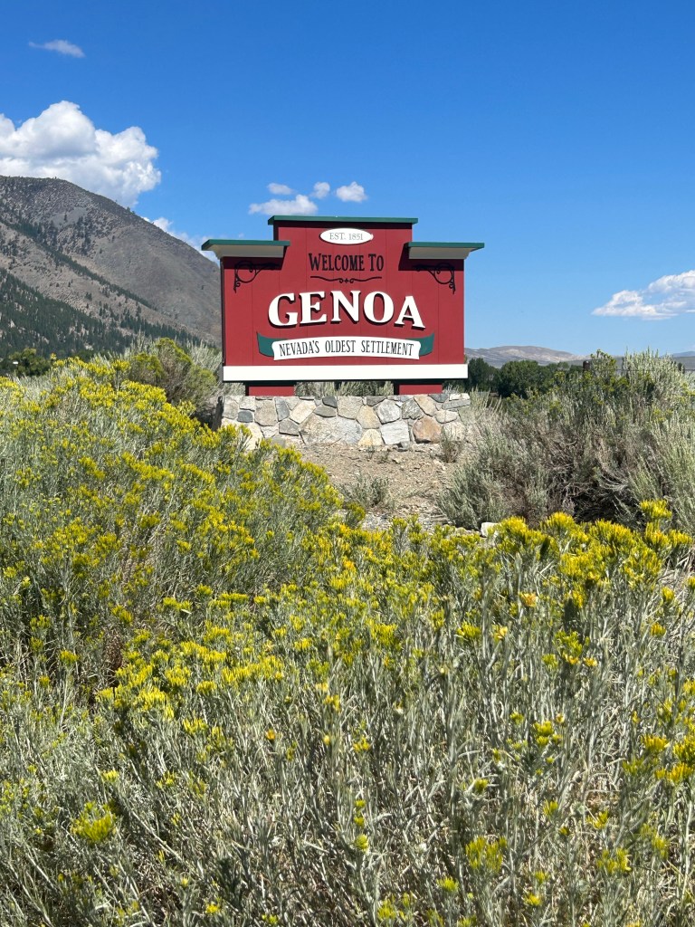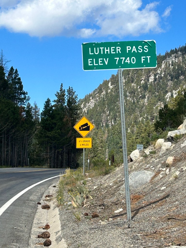 That was it – the road turned to the valley far below and I bombed down, stopping a few times to let my brakes cool off. I started braking at 40 mph. Who knows how fast I would have gone otherwise! At some point I crossed from CA to NV, but never saw a sign announcing the event. I wasn’t sure where I was until I saw this sign: