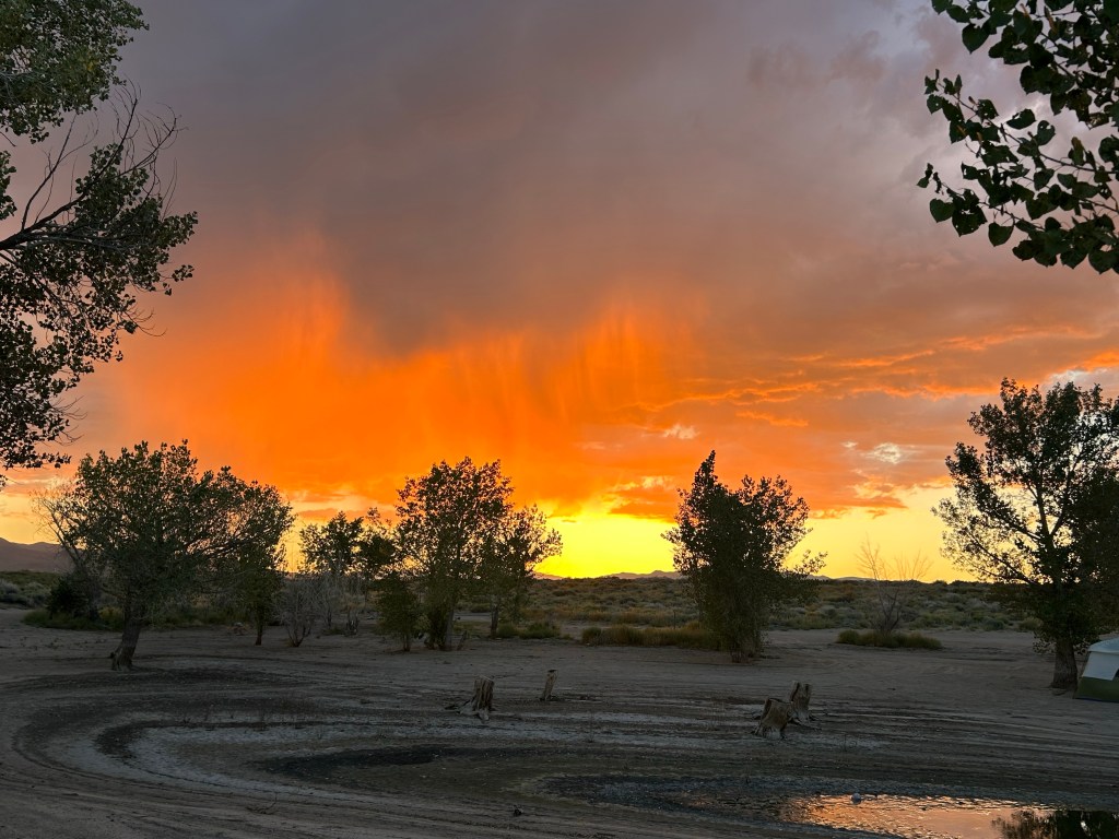 Genoa was a nice little stop on the road. They had a general store with a patio where I had a sandwich and some ice cream. Then it was time to get serious and figure out where I would ride to. I was considering Silver Spring – but it was over 50 miles away and I had already ridden 25 or so. But I went for it, and once I turned west at Carson City I caught a nice tail wind for most of the way and I was cranking out the miles – felt like I got my mojo back. It was pretty late by the time I reached Silver Springs, and then I realized that the campground was 7 miles off of the route. Bummer – but there was no other option so off I went. It was close to being dark when I reached the State Park campground. It was looking very threatening, with gusts of wind and intermittent rain as I rode in – but in the end it was all show as thankfully the storm dissipated. Made for a nice sunset though.