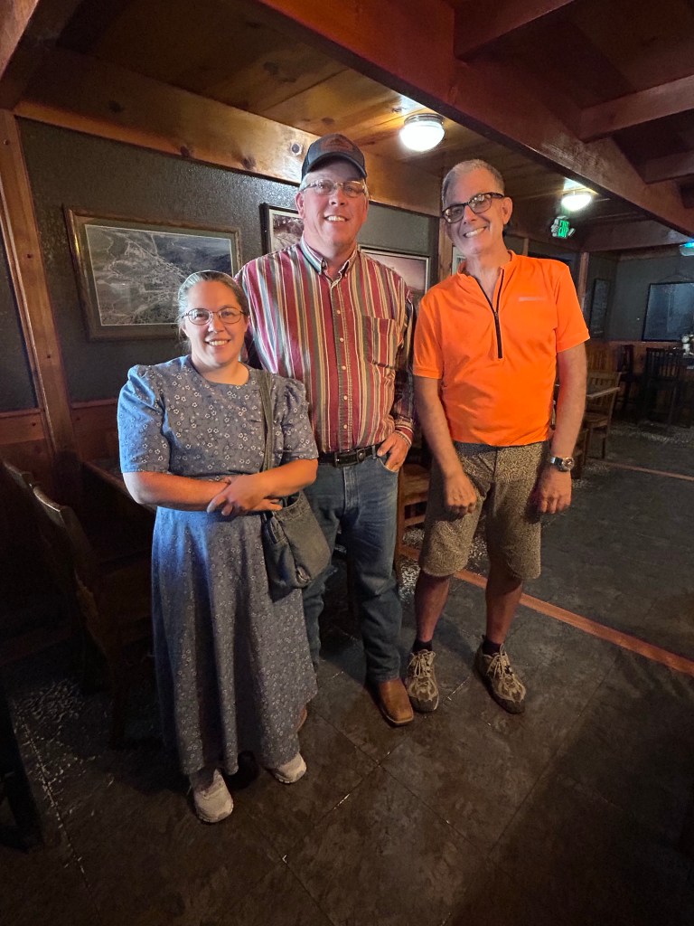 My plan for this morning was to get going pretty early and cycle the 15 miles into Eureka to get provisions and have breakfast before hitting that lonely highway again. The supermarket was at the edge of town and I picked up some fruit and snacks and a few other things. I had a couple of freeze dried meals that I kept handy for the nights that I camped out with no amenities. I asked the cashier where she would recommend me having breakfast – she replied that there was one restaurant in town that was open for breakfast – The Owl. So The Owl it was. The sign coming into Eureka claims that it is “The Friendliest Town on the Loneliest Road” – my first impression was anything but. The Owl Cafe was dark, with just a few customers eating, no music or chatter – pretty morose. I ordered the biggest breakfast they had and some coffee. It was nothing fancy, but it filled the tank. I had noticed a Mennonite couple who were eating in the back and went over to talk to them. They were very friendly and invited me to sit down with them and we had a nice chat over coffee. Chuck and Heidi had moved from Wisconsin to Eureka several years before and are hay and alfalfa farmers. I learned a lot about hay and alfalfa in a short period of time – it was really interesting. Hay from that part of Nevada is shipped as far as Florida as it has a high protein content and other benefits – who knew? I told them about our work with the orphanages in Mexico and the connection there to the Mennonite Church and they were really interested as they had traveled to Mexico and Belize. There was so much that I wanted to ask them, but they had to go take care of their farm, and I needed to get on the road.