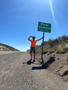 Dan told me that the road I had struggled on from Placerville to South Lake Tahoe was, in his opinion, the toughest stretch in his journey cross country. Even if he was lying to make me feel better…it worked. Now I had one final challenge before descending down out of the Sierra Nevadas. Dagget Summitt. After coffee and roll, Dan headed off to work and I headed off to climb the Summitt. It was just as brutal as all the rest, so I fell into my routine – cycle 1/2 mile, rest, repeat. Soon I saw this wonderful sign that signaled the end of my suffering.