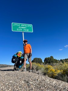 It was a chilly morning, and it took awhile for me to emerge from my tent cocoon as the sun rose – Alfred and Janette invited me over to their RV for breakfast, and the smell of fresh coffee wafted out of the door. Then it was time to say good bye and they pulled out only minutes before I did. I was about 40 miles from Ely, NV (Janette’s hometown, by the way) and decided that I would get a hotel room there as I hadn’t had a shower in a couple of days and was definitely ripe, and also it was college football time and I would be able to catch the Tennessee – Florida game which was on at 4pm. Like most days, I started by climbing a pass.