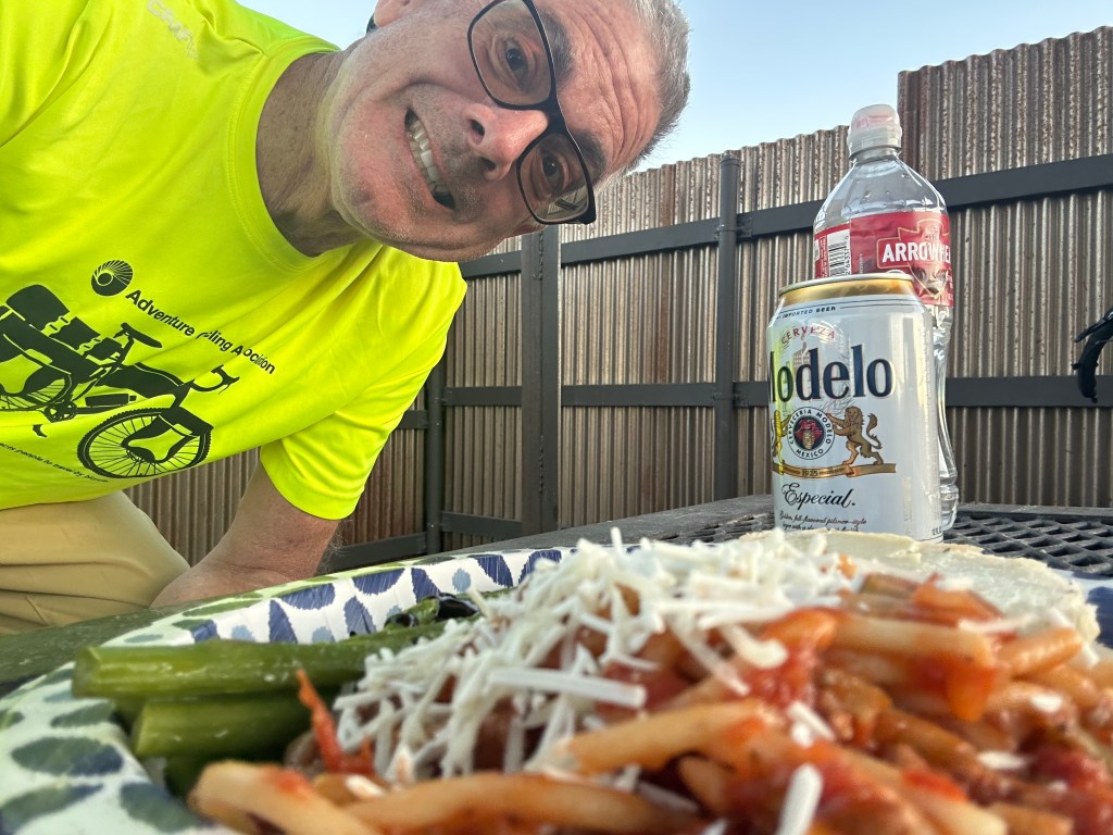 We walked back up to the campsite and by the time I had set up my tent and cleaned up a bit, Janette had dinner waiting for us. Spaghetti, sautéed asparagus, good bread, a cold beer and ice cream! I was in heaven. Alfred and Janette are those kind of people that you could talk to all night – interesting, well traveled, intelligent and curious. We talked about all kinds of things into the evening until it was my bedtime. Meeting awesome, generous people like these two restore your faith in humankind!