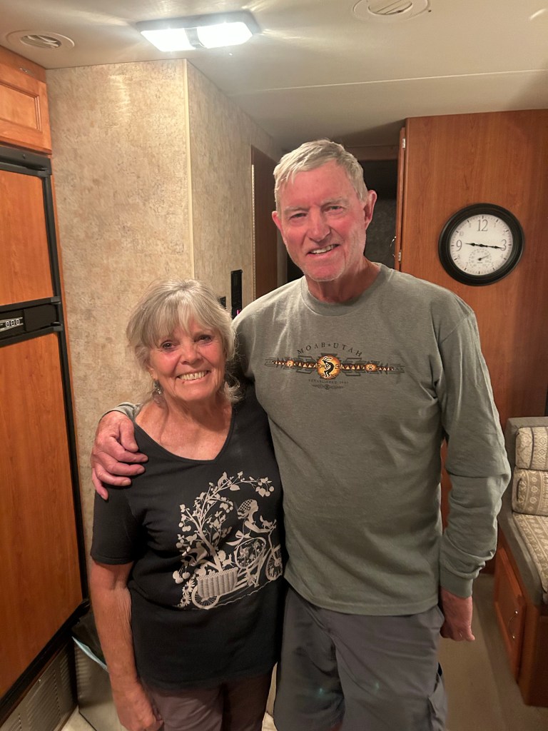I went inside to order and although a few more customers were at the bar, the grill cook had a full grill of burgers. I ordered a burger and a beer and was informed that they had a large military order to prepare and it would take a little extra time for my burger. No problem – I took my beer outside to sit and chat. In the dusky light we saw a caravan of headlights converging on the bar as all types of military vehicles descended on the parking lot. Burly guys poured out and grouped together to receive instructions from their leaders. It was straight out of a zombie apocalypse movie. I went inside for another beer and noticed that several tables had been put together and plates were lined up containing the biggest hamburgers I had ever seen. They were gigantic. I asked the bartender what was going on and evidently this is a thing at Middlegate – they have a 5 pound hamburger, and if you can eat the whole thing, including fries, you get a t-shirt. The military guys came streaming in and it was time for a old fashioned, all American eating contest. Some of them actually finished! By the way, I did get my regular burger and it was very good. By that time the bar was hopping and we met a nice couple from New Zealand who were very interested on our bike tours. The staff did a great job of handling the crowd and the orders and I started to feel the magic of Middlegate – people were nice, prices were right, beer was cold……and by the time I went to bed I was a full-fledged convert. If you are ever on Hwy 50 in Nevada, make sure you stop by.